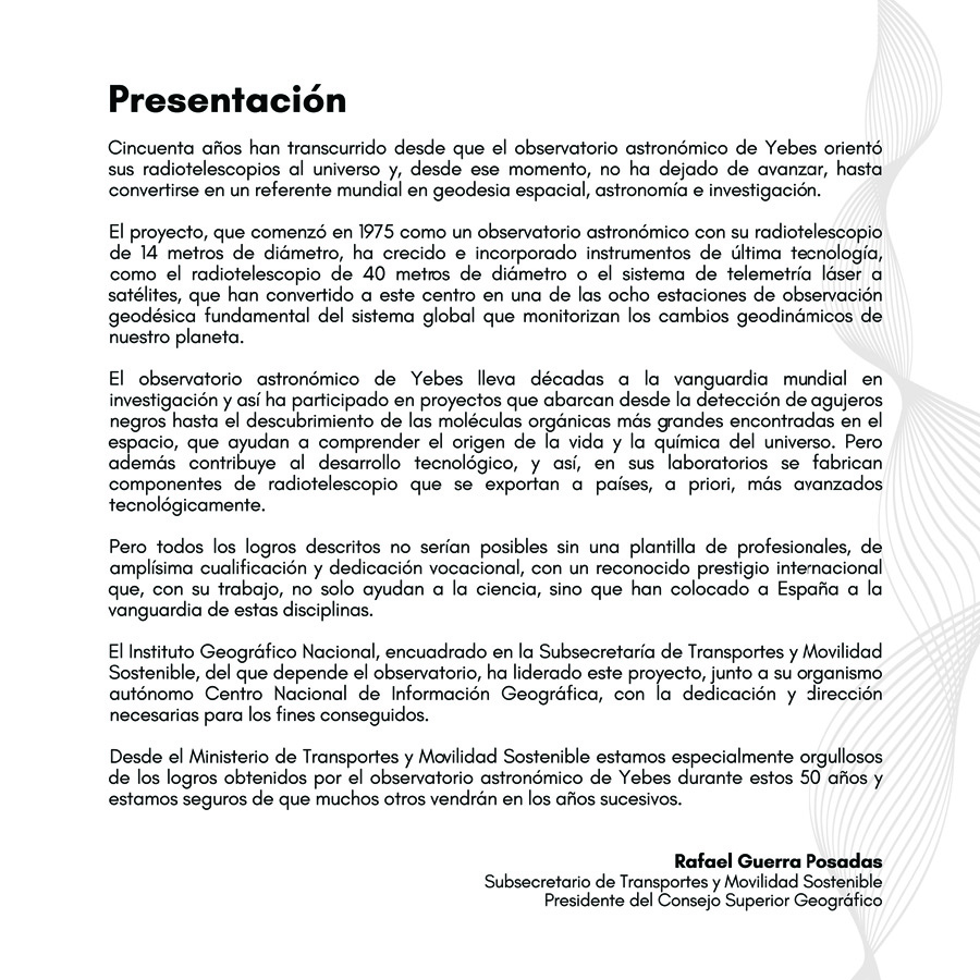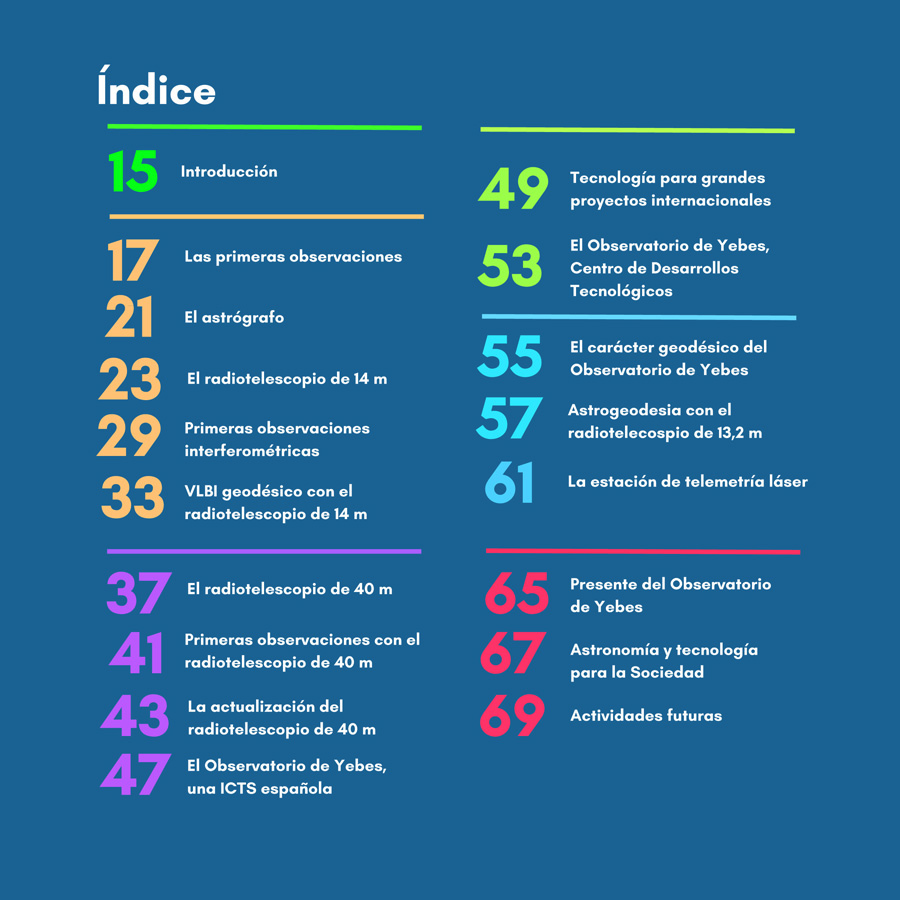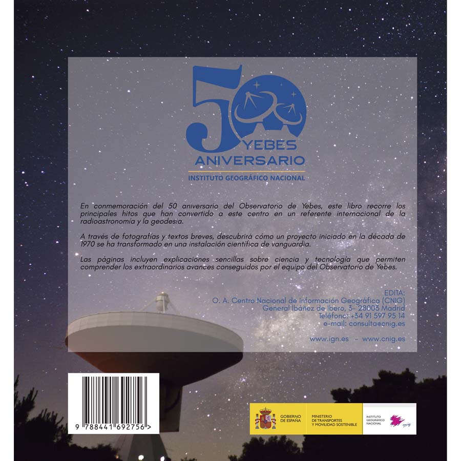 Publicación conmemorativa del 50 aniversario del Observatorio de Yebes que recorre los principales hitos que han convertido a este centro científico en referente internacional de la astronomía y la geodesia. Incluye fotografías y explicaciones sencillas . Dimensiones: 21 x 21 cm. N.º págs.: 71